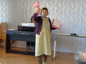今月は「音の玉手箱」さんをお招きしました。この時期にぴったりな秋の童謡をはじめ、たくさんの歌を歌っていただきました。